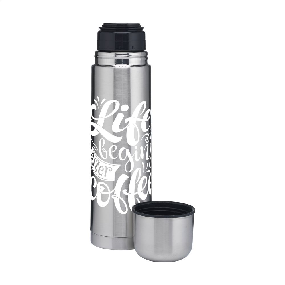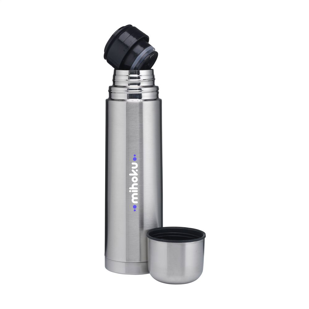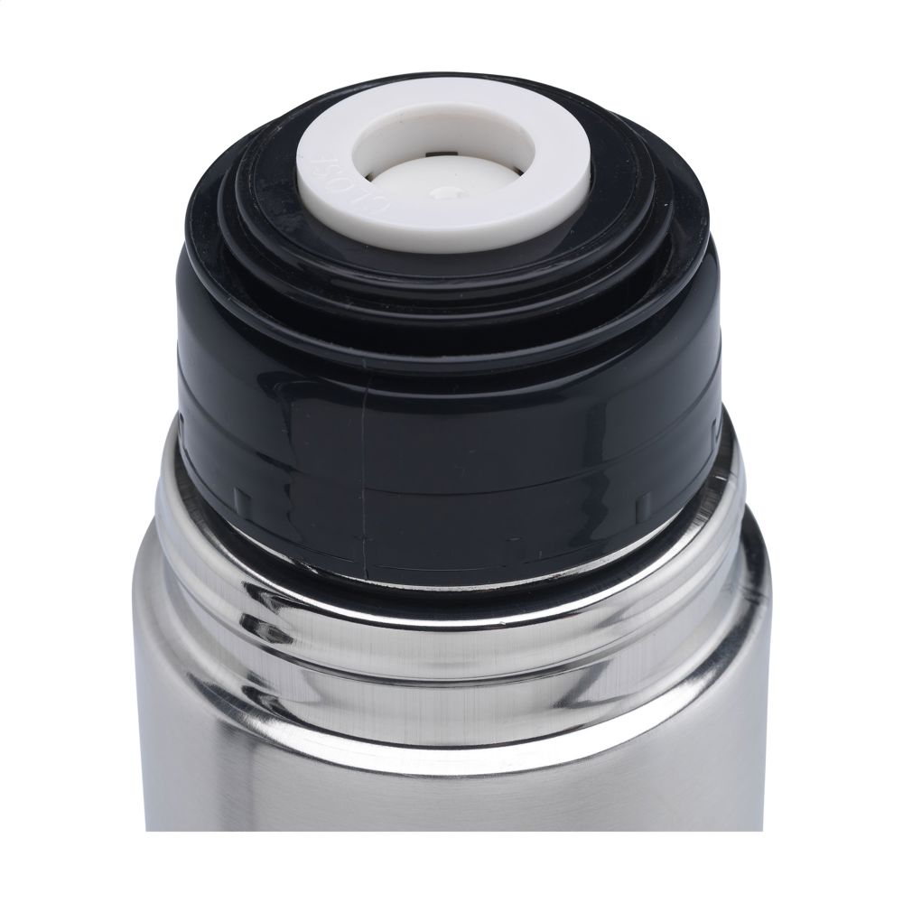 Doppelwandige, vakuumisolierte, rostfreie Thermoflasche aus recyceltem Edelstahl. Unzerbrechlich und unverwüstlich. Der Vakuumraum zwischen den Wänden isoliert den Inhalt und hält Getränke lange Zeit warm oder kalt. Mit Schraubdeckel/Trinkbecher und handlichem Schanksystem mit Druckverschluss. Auslaufsicher. Nicht spülmaschinengeeignet. RCS-zertifiziert. Gesamtes recyceltes Material: 75%. Fassungsvermögen 750 ml. Edelstahl kann viele Male recycelt werden – die Qualität des Materials bleibt dabei weitgehend erhalten. Durch die Verwendung von recyceltem Edelstahl kommt eine geringere Menge an neuen Rohstoffen zum Einsatz. Das bedeutet weniger Energieverbrauch und weniger Wasserverbrauch. Verpackt pro Stück.