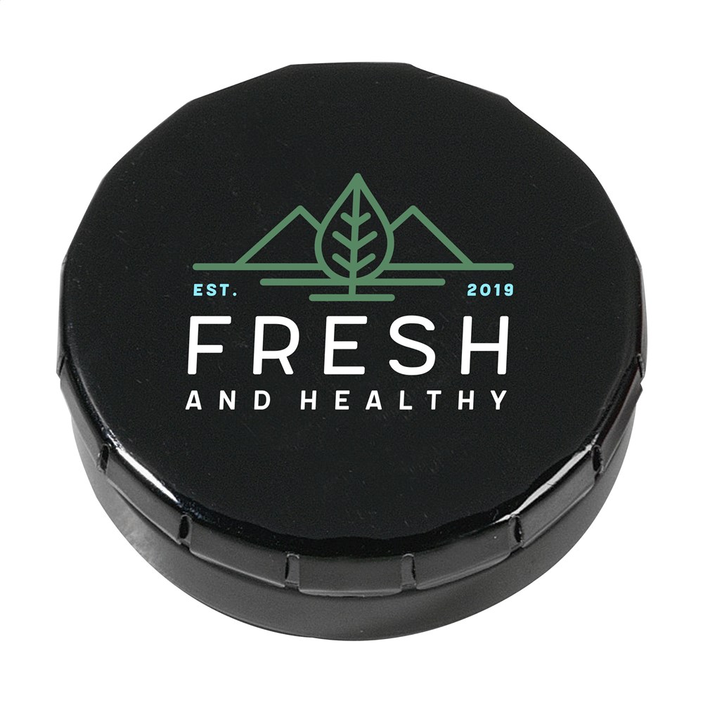 Süßigkeitendöschen mit handlichem Druck-/Klicksystem. Gefüllt mit ca. 12 g. Pastillen. mehr