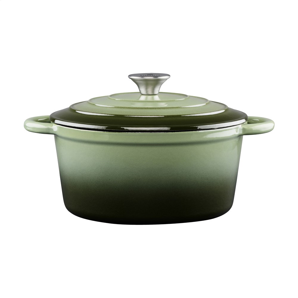 Emaillierter Schmortopf aus Gusseisen mit passendem Deckel und Edelstahlknopf. Das emaillierte... mehr