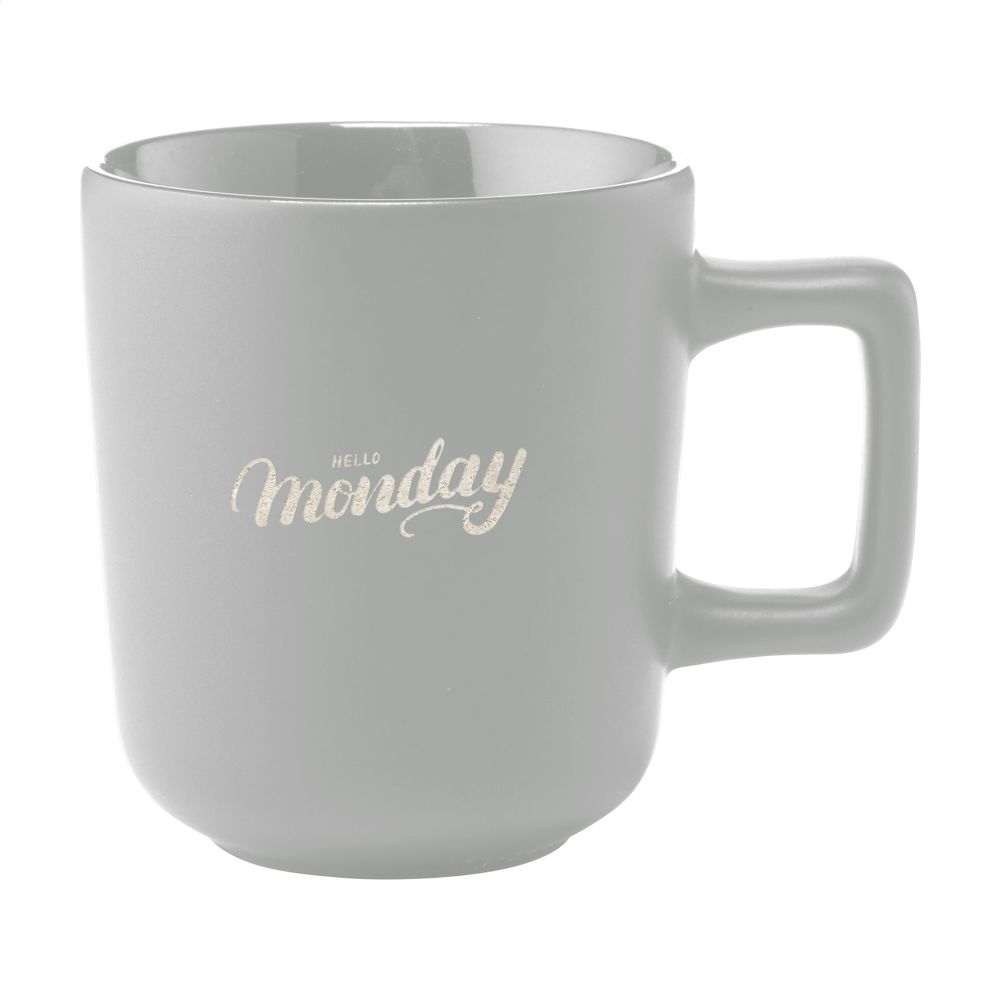 Becher aus hochwertiger Keramik mit einem auffälligen Henkel. Außen matt und innen hochglänzend lackiert. Spülmaschinenfest. Der Druck ist spülmaschinengeprüft und zertifiziert: EN 12875-2. Fassungsvermögen 280 ml. NOTIZ: Der weiße Becher kann nicht mit einer Lasergravur versehen werden, da diese nicht ausreichend sichtbar ist.