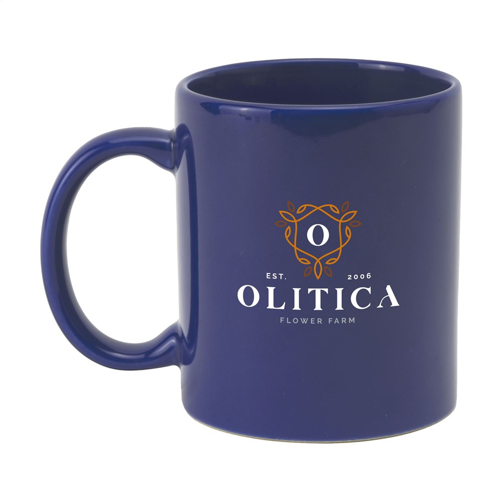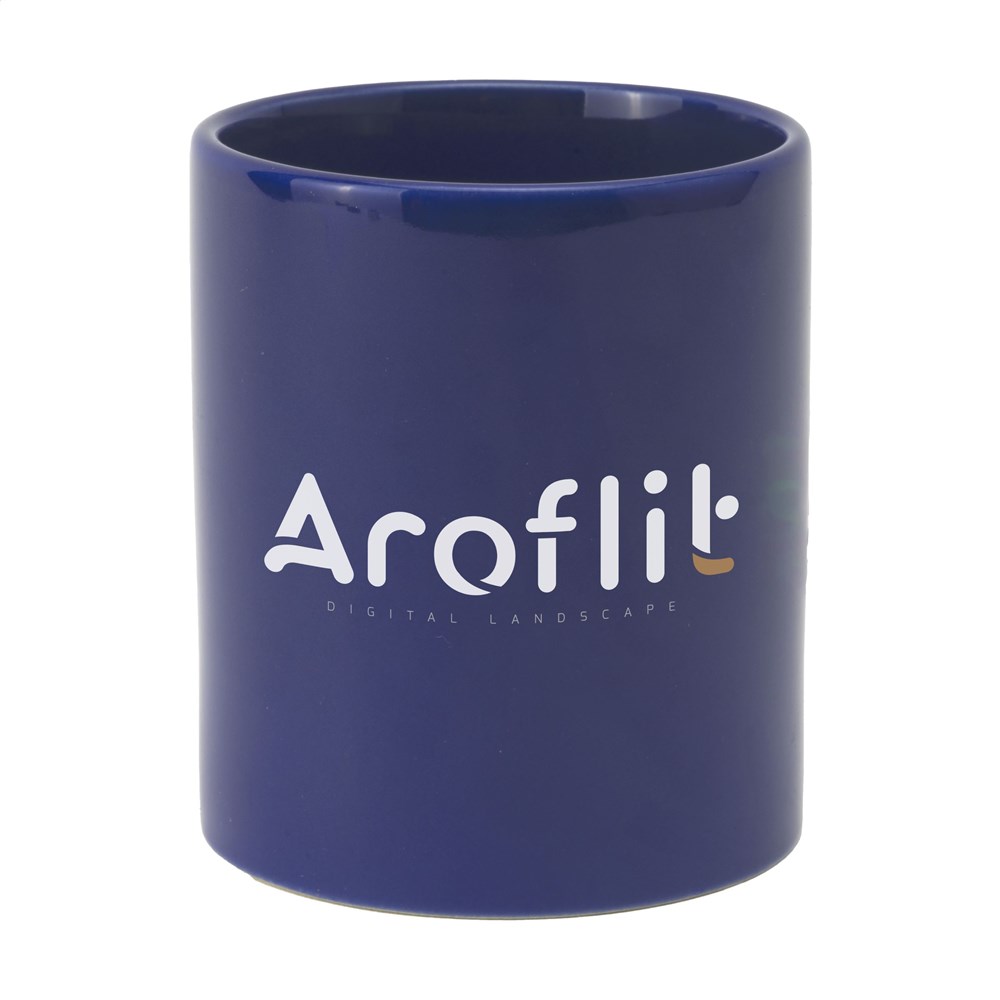 Becher aus hochwertiger Keramik. Komplett in weiß oder mit farbiger Außenseite. Spülmaschinengeeignet. Der Aufdruck ist spülmaschinengeprüft und nach EN 12875-2 zertifiziert. Fassungsvermögen 350 ml.