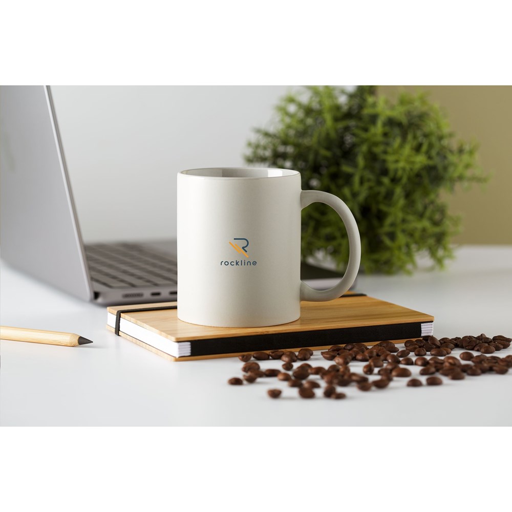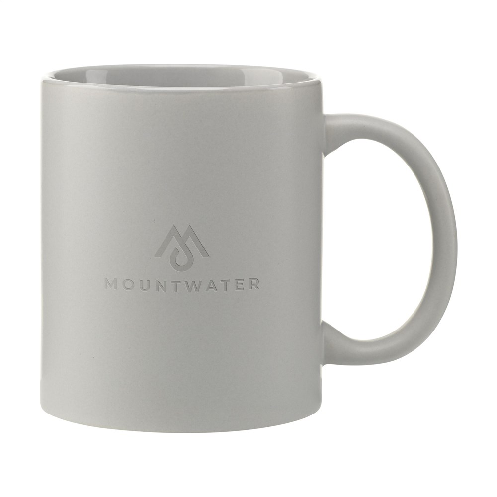 Becher aus hochwertiger Keramik mit mattierter Außenseite und glänzender Innenseite. Spülmaschinengeeignet. Der Aufdruck ist spülmaschinengeprüft und nach EN 12875-2 zertifiziert. Fassungsvermögen 350 ml.