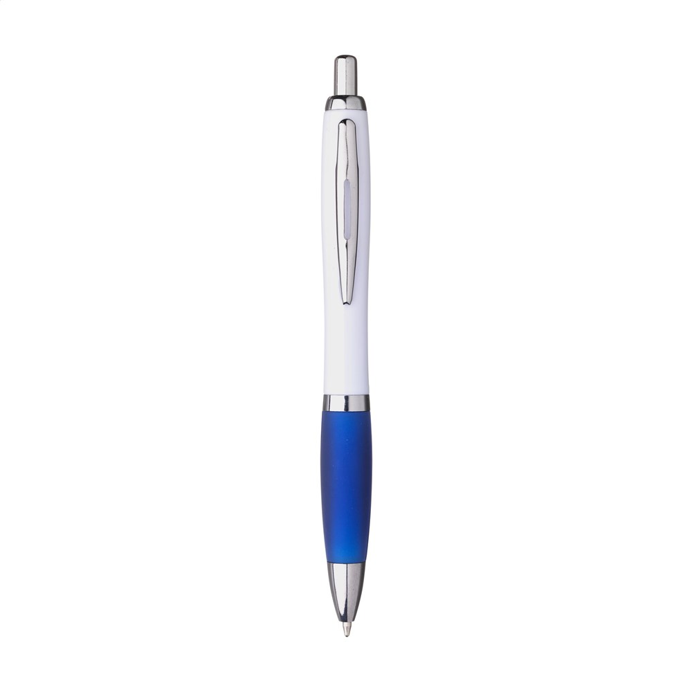 Blauschreibender Kugelschreiber. Das transparent farbiges Gehäuse besteht aus recyceltem ABS. Mit... mehr