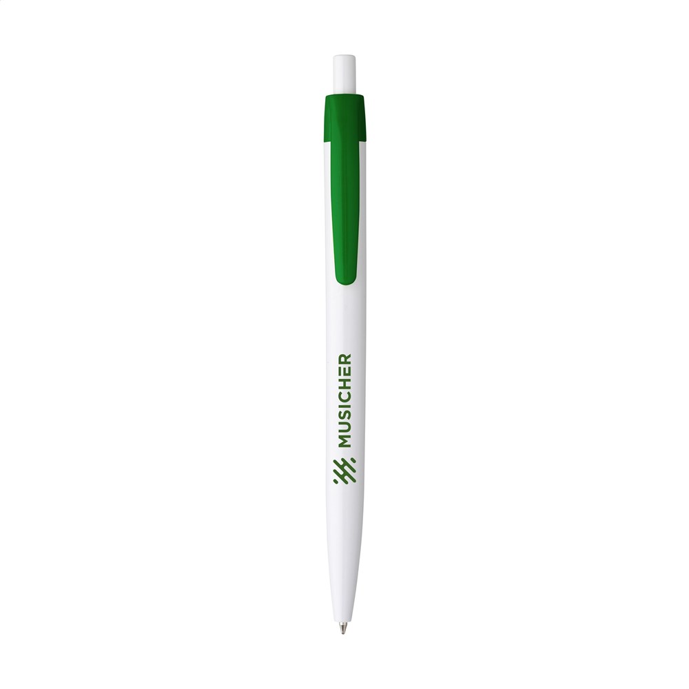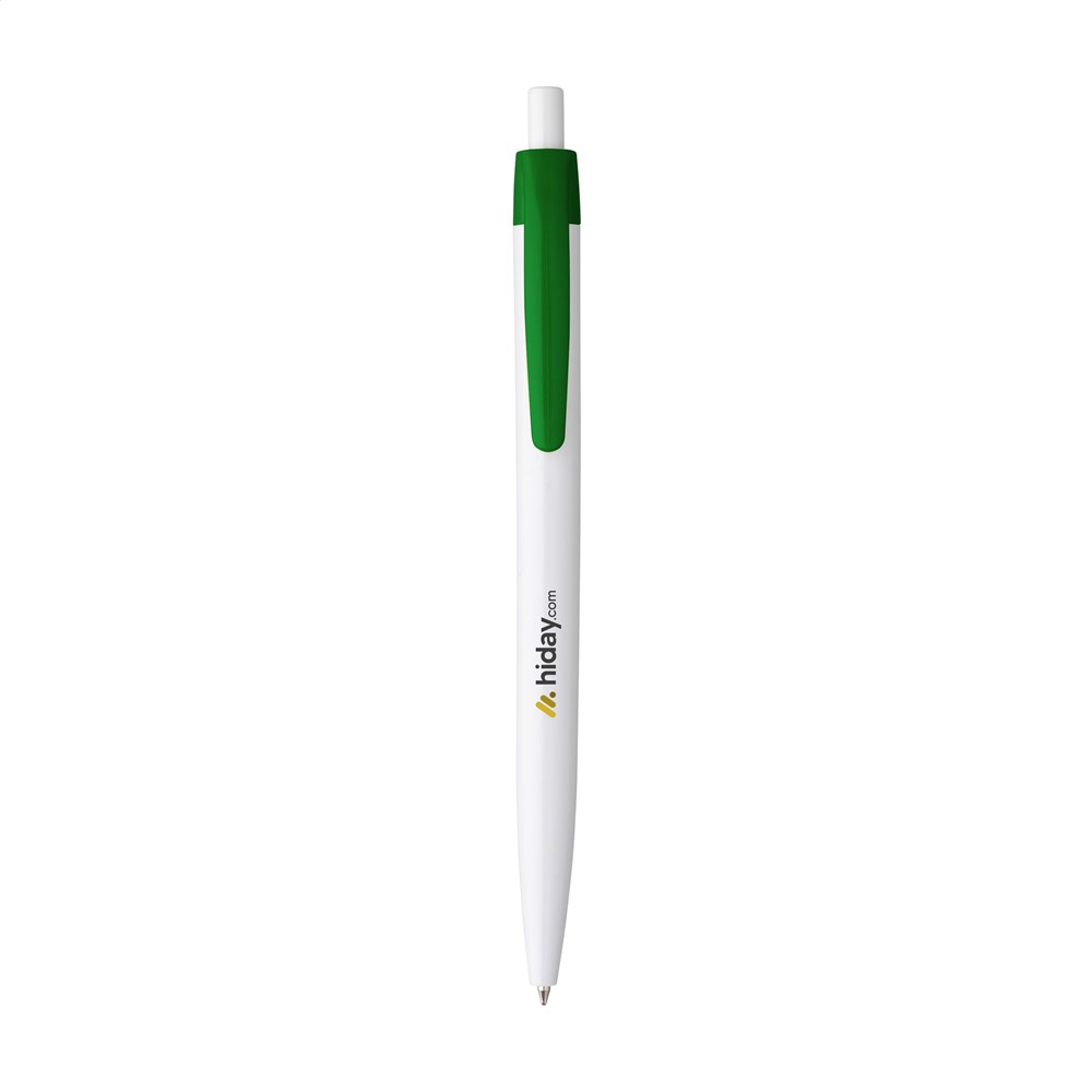 Blauschreibender Kugelschreiber mit einteiligem Gehäuse. Sehr gut geeignet für einen großzügigen Aufdruck.