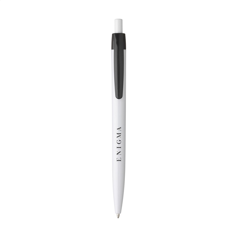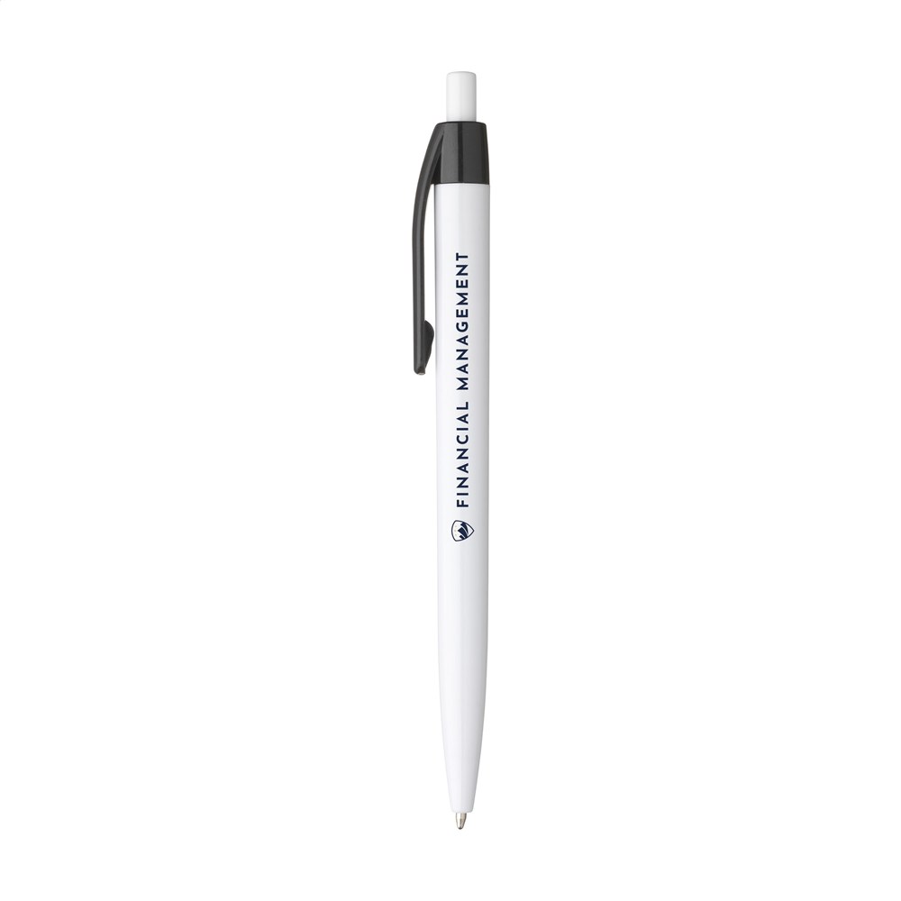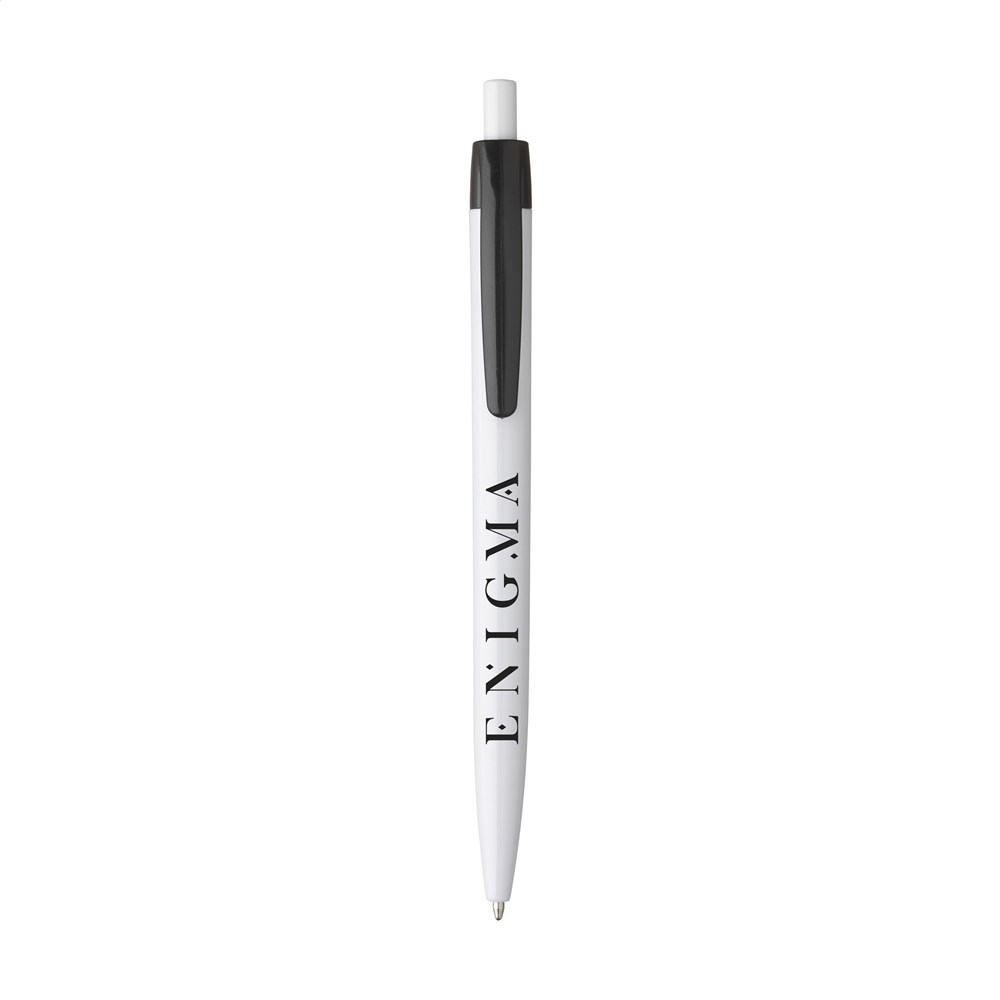 Blauschreibender Kugelschreiber mit einteiligem Gehäuse. Sehr gut geeignet für einen großzügigen Aufdruck.