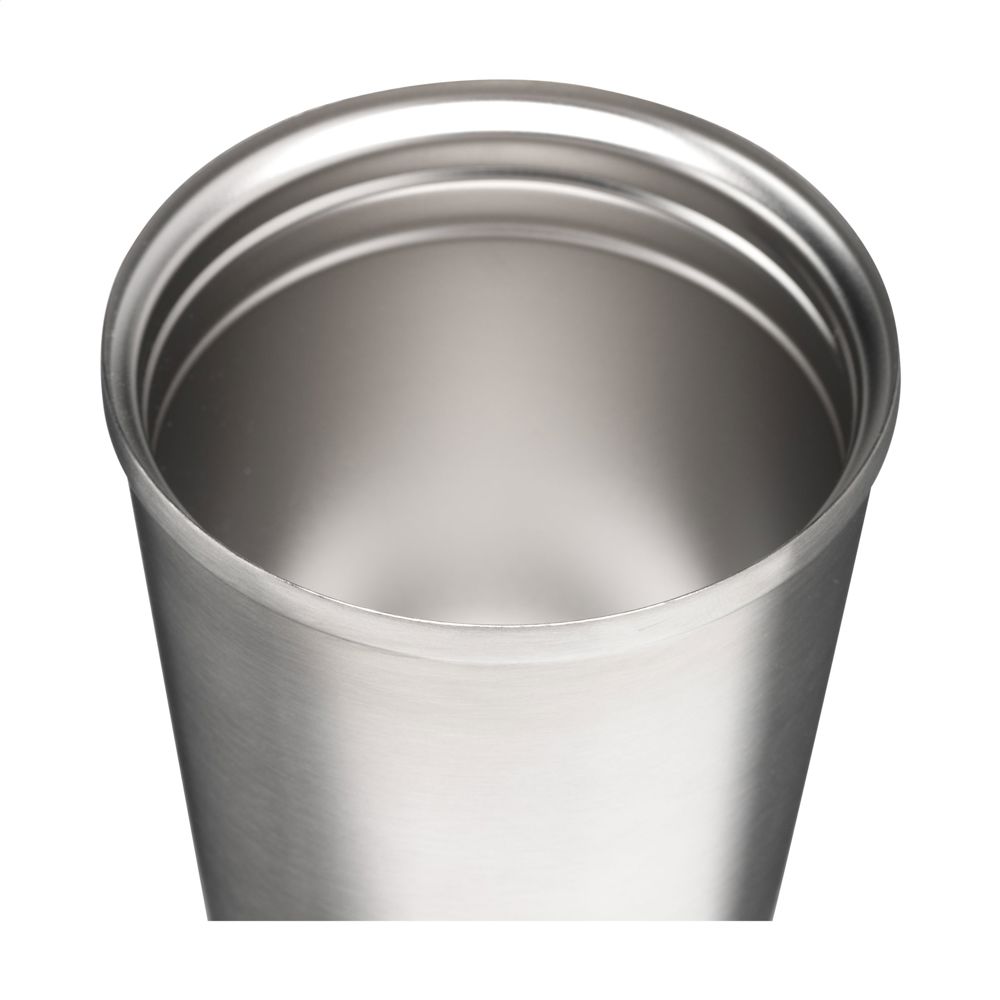 Doppelwandiger, auslaufsicherer Thermobecher aus recyceltem Edelstahl. Abgerundet mit einem... mehr