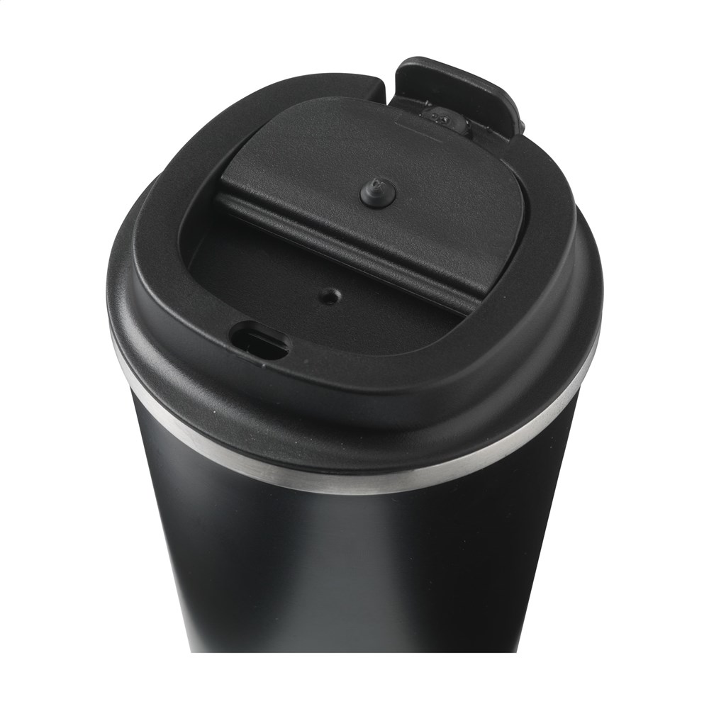 Doppelwandiger, auslaufsicherer Thermobecher aus recyceltem Edelstahl. Abgerundet mit einem... mehr