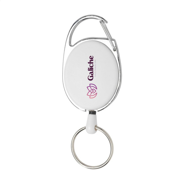 Kartenhalter mit Abrollmechanismus und Rücklaufsystem. Hergestellt aus Metall in Kombination mit ABS-Kunststoff. Der Rollclip verfügt über einen Schlüsselring und einen Karabiner. Die 60 cm lange ausziehbare Schnur ermöglicht die einfache Verwendung von Zugangskarten, Ausweisen oder Schlüsseln. Befestigen Sie den Halter an Ihrer Hose oder Tasche und führen Sie Ihre Zugangskarte mit einem Handgriff am Scanner vorbei. Ideal für den Einsatz in Büros, auf Messen, Konferenzen oder sogar auf der Skipiste.
