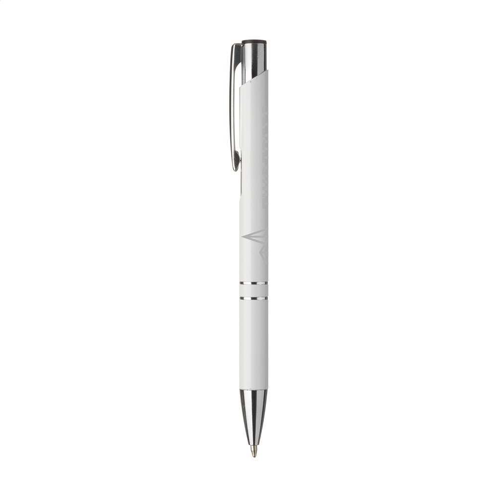 Blauschreibender oder schwarzschreibender Kugelschreiber aus Aluminium mit mattfarbenem Gehäuse... mehr