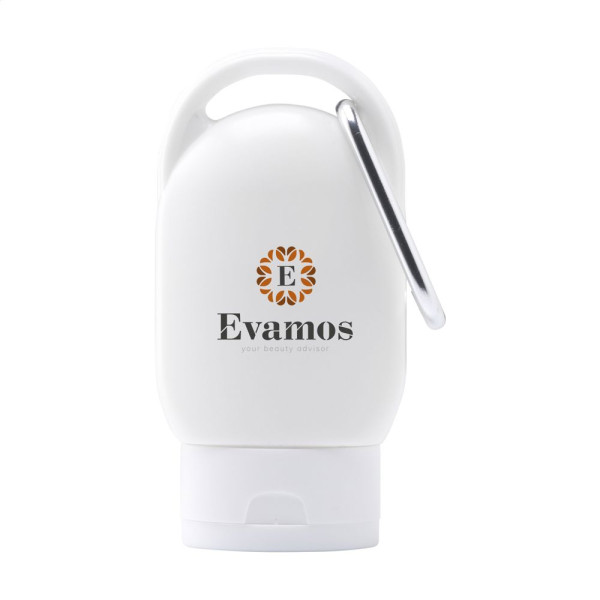 Sonnenschutzlotion (Faktor 30) in einer handlichen Plastikflasche mit farbigem Verschluss und passendem Metallkarabiner. Lässt sich mit einem Klick an der Tasche, dem Rucksack oder der Gürtelschlaufe befestigen. Mindesthaltbarkeit bis zu 12 Monate nach dem Öffnen. Inhalt 30 ml. Zutaten: aqua, glycerin, ethylhexyl methoxycinnamate, octocrylene, Ethylhexyl Salicylate, Isopropyl myristate, cetearyl alcohol, butyl methoxydibenzoylmethane, ceteth-25, glyceryl stearate, titanium dioxide, dibutyl adipate, phenoxyethanol, parfum, methylparaben, propylparaben, BHT, disodium EDTA, vanillin, coumarin.