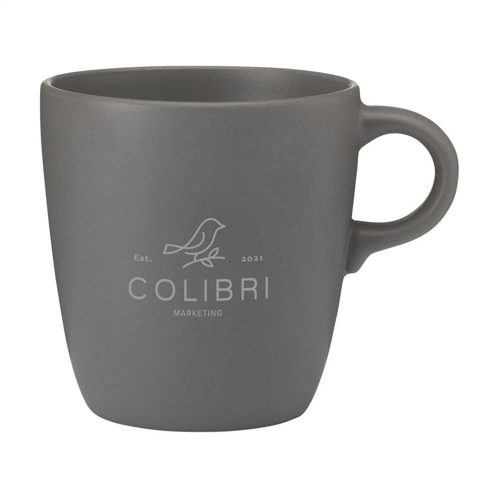 Becher im schlichten, trendigen Design. Hergestellt aus hochwertiger Keramik und mit einer matten Beschichtung auf der Außen- und Innenseite. Fassungsvermögen 375 ml. NOTIZ: Der weiße Becher kann nicht mit einer Lasergravur versehen werden, da diese nicht ausreichend sichtbar ist.