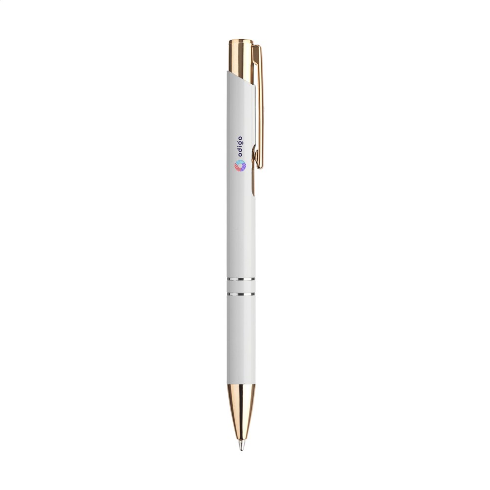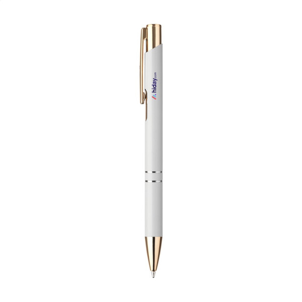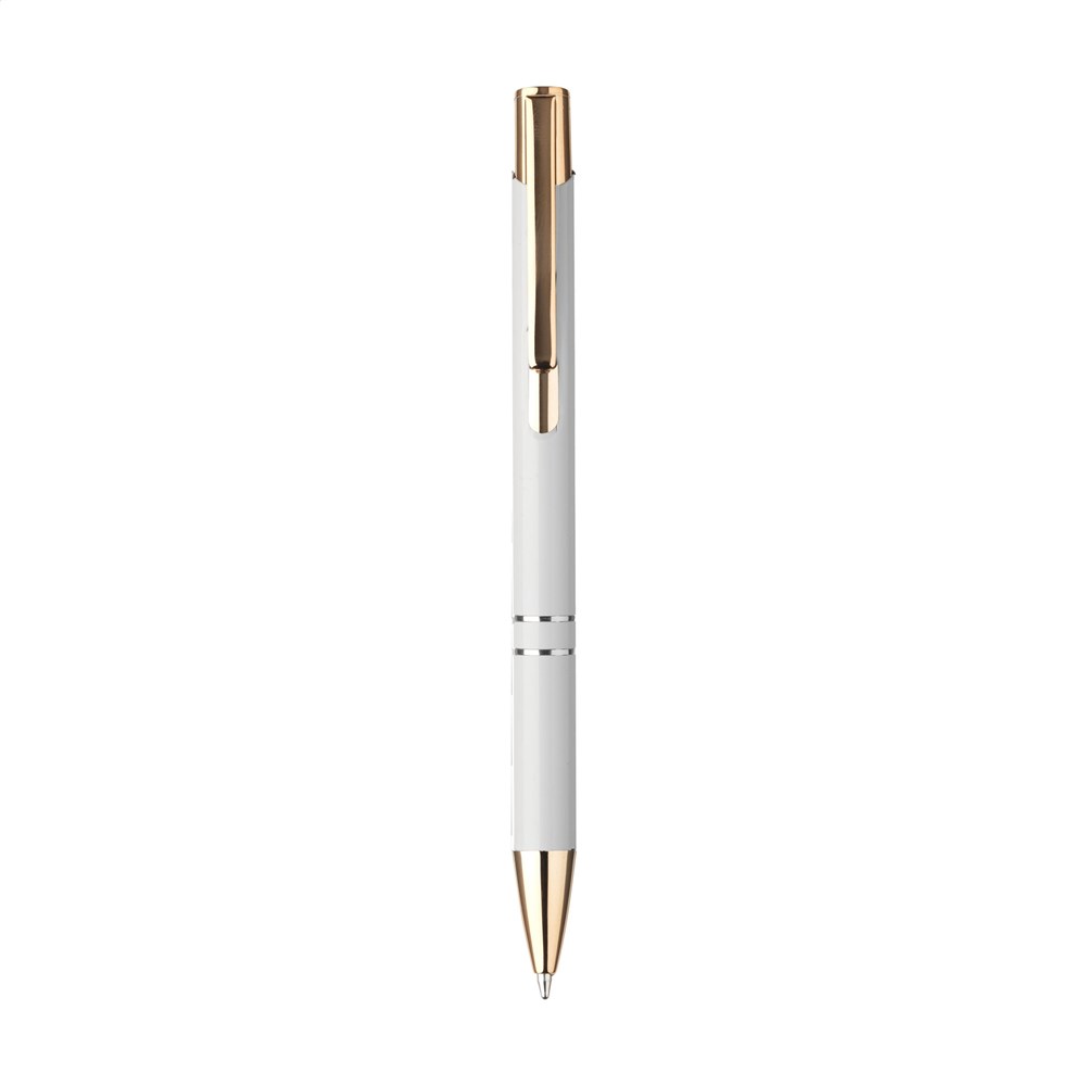 Blauschreibender Kugelschreiber aus recyceltem Aluminium mit einem stabilen, roségoldenen... mehr