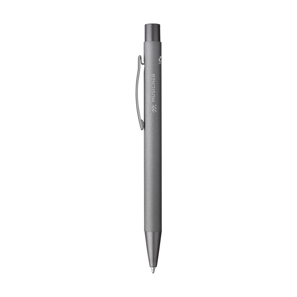 Blauschreibender Kugelschreiber aus recyceltem Aluminium. Das Gehäuse ist mit einer schönen... mehr