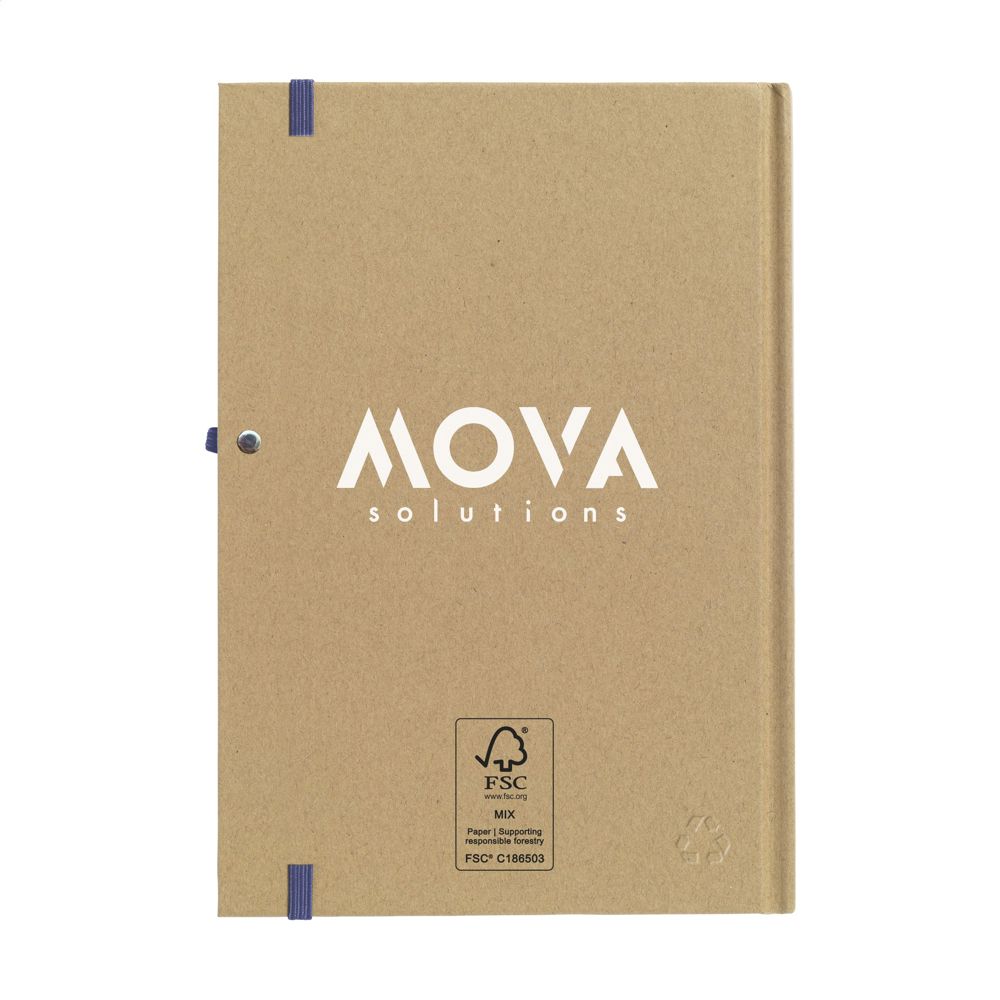Notizbuch im A5-Format aus recyceltem Material. Mit ca. 80 Blatt/160 Seiten cremefarbenem, liniertem FSC Mix zertifiziertes Papier (70 g/m²), praktischem Stiftfach und elastischem Verschluss.