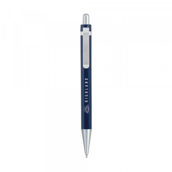 Blauschreibender Kugelschreiber mit mattmetallenem Clip. mehr