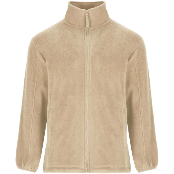 Fleecejacke mit gefüttertem Stehkragen und entsprechend verstärkten und verdeckten Nähten. Eingespritzter Reißverschluss mit passendem Zipper aus Stoff. Seitentaschen. Ärmelbündchen mit Gummizug. Unterer Saum mit seitlichem Reißverschluss. Herausnehmbares Etikett. Das Modell ist 185 cm groß und trägt Größe M.
