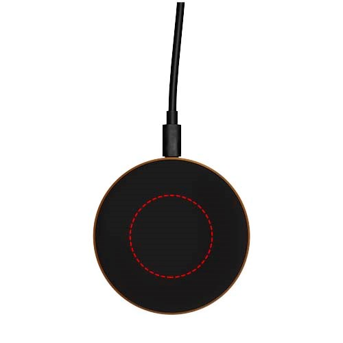 Kabellose 10 W Ladestation mit leuchtendem Logo, antibakterieller Soft-Touch-Oberfläche und aus Holz. Mit einem Ladekabel aus recyceltem PET-Kunststoff. Geliefert in einer schwarzen Kraft-Geschenkbox aus Recyclingpapier mit magnetischem Schließmechanismus. Patent EUROPE EUIPO.
