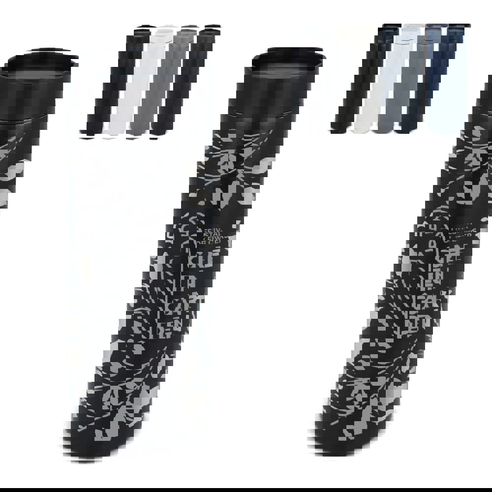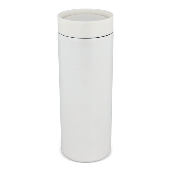 Moderner Thermobecher aus recyceltem Edelstahl (400 ml) mit einem cleveren Druckknopfdeckel und einer 360-Grad-Trinkmöglichkeit. Lasergravierte Logos mit Chromeffekt oder digitale Hochglanzlogos mit dezentem Effekt. Jedes Produkt ist in einer Geschenkbox verpackt.