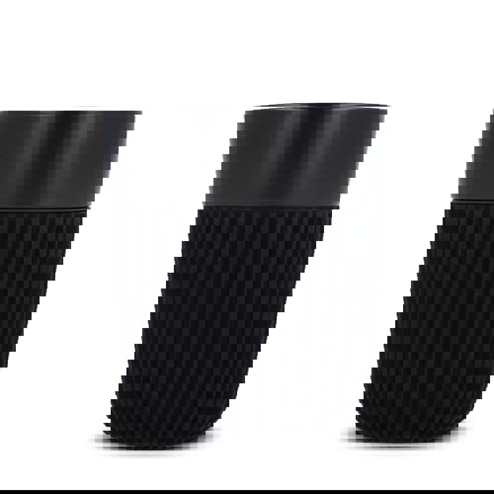 Der InSideOut All Black Premium-Becher Fjord aus Bone China hat eine exklusive gerippte Silikonhülle, die isoliert und schützt. Von Andy Cartwright entworfen, verkörpert er Eleganz und Luxus. Passend für die meisten Kaffeemaschinen, spülmaschinenfest und perfekt für den täglichen Gebrauch.