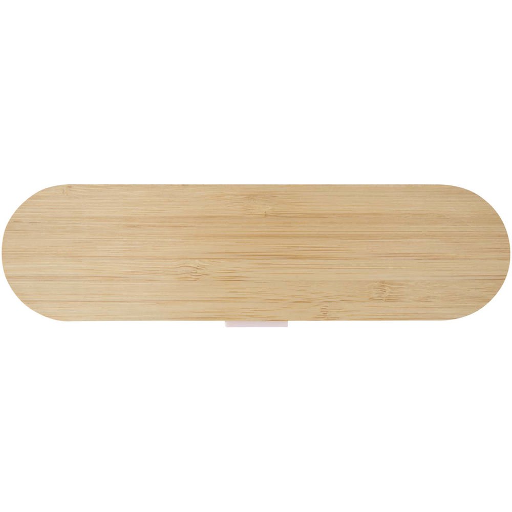 Ein praktisches wiederverwendbares Besteckset bestehend aus Gabel, Messer, Löffel, Trinkhalm und Trinkhalmreiniger ist die ideale Lösung für Mahlzeiten unterwegs. Kompakt und leicht zu reinigen, eignet es sich perfekt für Lunchboxen, Reisen oder den Einsatz im Büro. Geliefert in einer Kunststoff-Aufbewahrungsbox mit Bambusdeckel.