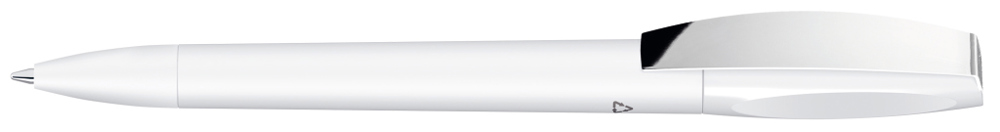Drehkugelschreiber mit gedeckt mattem Gehäuse aus 100% recyceltem Post-Consumer-Kunststoff. Metallclip matt verchromt.