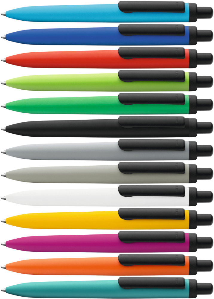 Metall-Druckkugelschreiber mit matt lackiertem Aluminiumschaft, Metallclip und Drücker in schwarz matt.