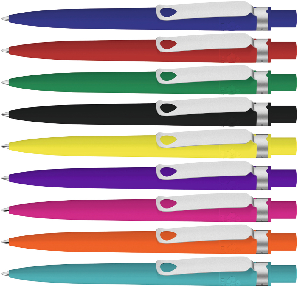 Druckkugelschreiber mit gummiertem Gehäuse aus recyceltem PET-Material mit Metallclip matt... mehr