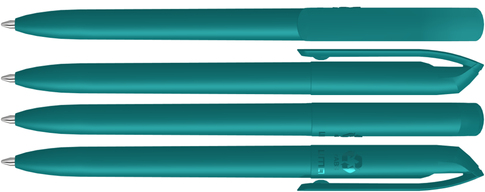 Drehkugelschreiber mit gedeckt mattem Gehäuse und Clip aus recyceltem ABS-Kunststoff. mehr