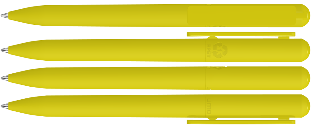 Drehkugelschreiber mit gummiertem Gehäuse aus recyceltem PET-Material mit glänzend gedecktem Clip. mehr