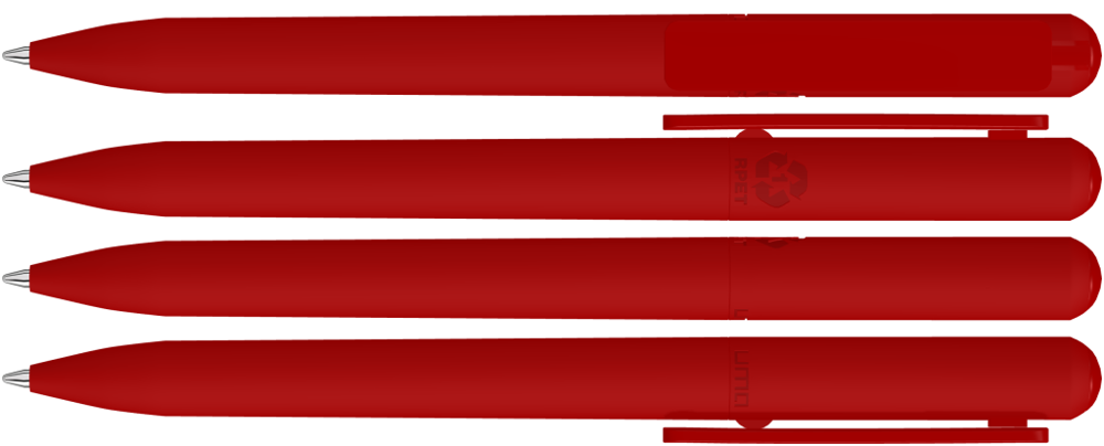 Drehkugelschreiber mit gummiertem Gehäuse aus recyceltem PET-Material mit glänzend gedecktem Clip. mehr