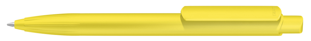 Druckkugelscheiber mit gedeckt mattem Gehäuse, Clip und Drücker aus recyceltem ABS-Kunststoff. Eingelassene Griffzone.