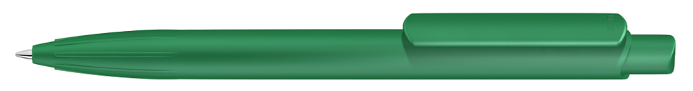 Druckkugelscheiber mit gedeckt mattem Gehäuse, Clip und Drücker aus recyceltem ABS-Kunststoff. Eingelassene Griffzone.