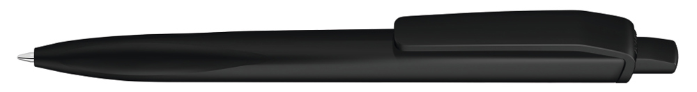 Druckkugelscheiber mit gedeckt mattem Gehäuse, Clip und Drücker aus recyceltem ABS-Kunststoff. Griffzone ergonomisch geformt.