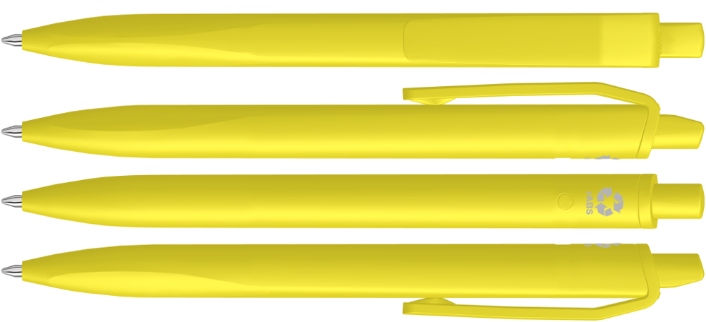 Druckkugelscheiber mit gedeckt mattem Gehäuse, Clip und Drücker aus recyceltem ABS-Kunststoff. Griffzone ergonomisch geformt.