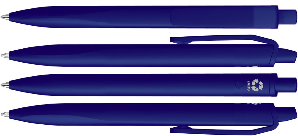 Druckkugelscheiber mit gedeckt mattem Gehäuse, Clip und Drücker aus recyceltem ABS-Kunststoff. Griffzone ergonomisch geformt.