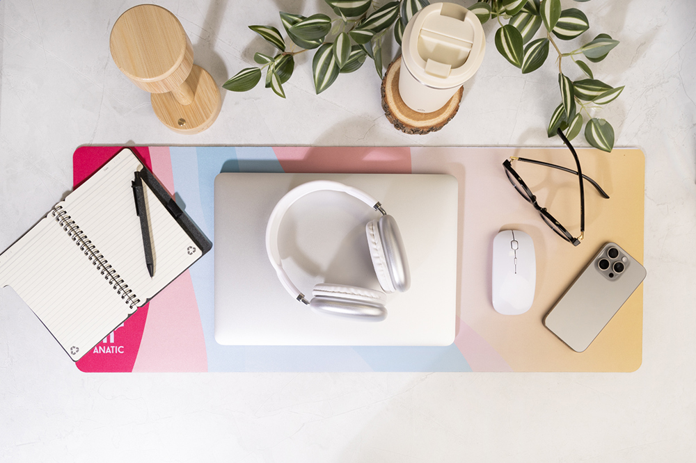 Sublimations-Mauspad aus RPET-Polyester mit rutschfester Unterseite aus Gummi.