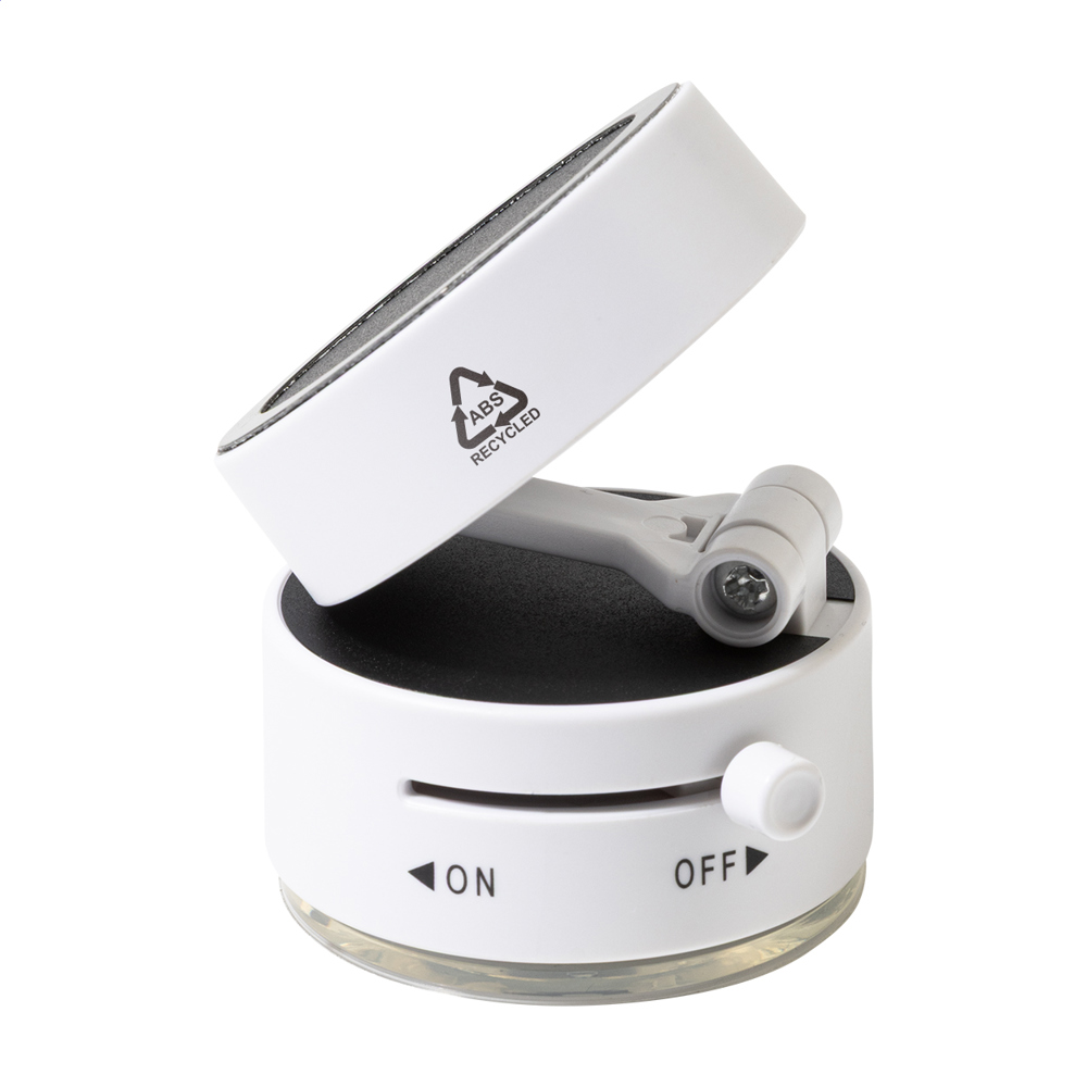 Magnetische Auto-Handyhalterung aus recyceltem ABS mit Saugnapf. Inklusive selbstklebendem Metallring für Handys ohne magnetische Oberfläche.