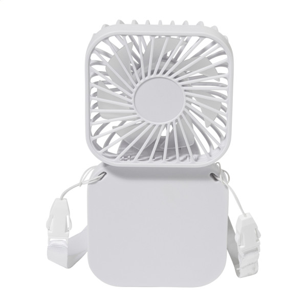 Elektrischer Handventilator aus recyceltem ABS mit Lanyard, eingebautem Akku (500 mAh), verstllbarem Kopfwinkel und 3-stufigem Geschwindigkeitsregler. Inkl. USB-Ladekabel.