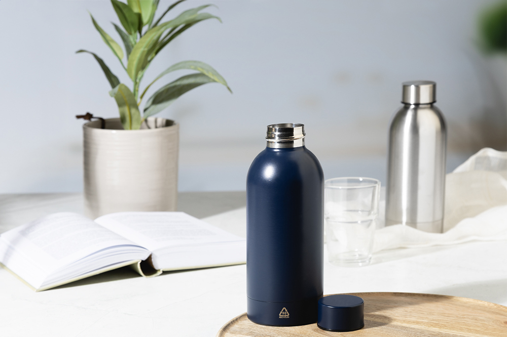 Flasche aus recyceltem Edelstahl. Füllmenge: 500 ml.
