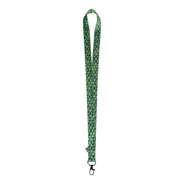 Individuelles Lanyard aus RPET mit farbigem Metallkarabiner. Der Preis ist inkl. beidseitigem Sublimationsdruck. Mindestmenge: 100 Stk.