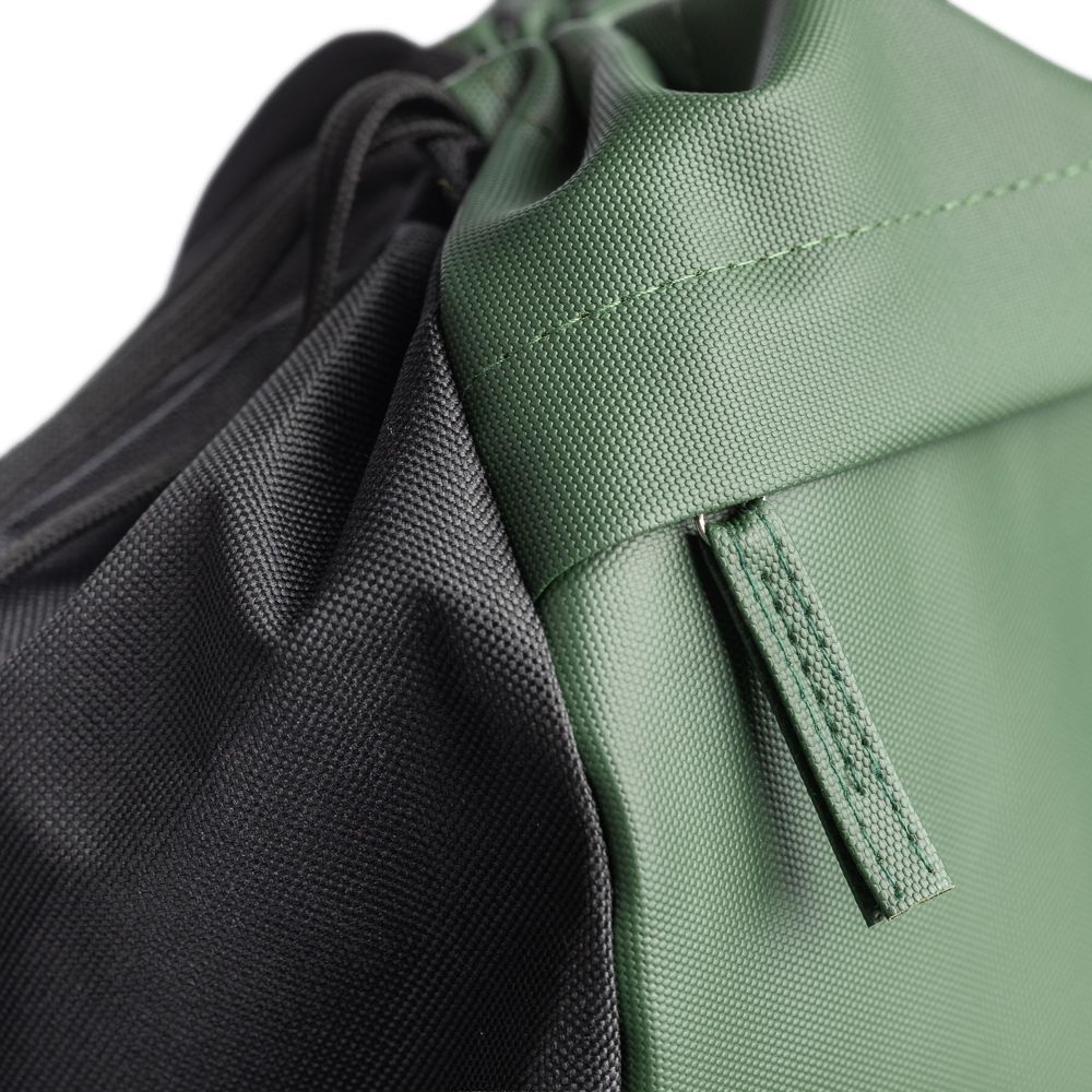 Die Kordelzugtasche ist aus rPET-Polyester (600D) mit PU-Beschichtung auf der Vorderseite zur Wasserabweisung gefertigt. Sie verfügt über eine versteckte Reißverschlusstasche auf der Vorderseite sowie ein geräumiges Kordelzugfach. Sie verfügt über zwei Fächer mit Vorder- und Innentaschen. Das Fassungsvermögen beträgt 8 l, die Tragfähigkeit 8 kg. Sie verfügt über ein rPET-Etikett auf der Außenseite.