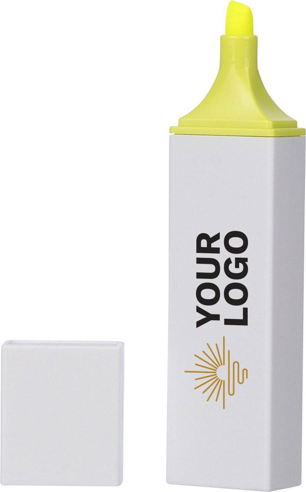 Textmarker aus recyceltem ABS mit weißem Gehäuse und farbigen Details. Mit Klickverschluss und 2... mehr