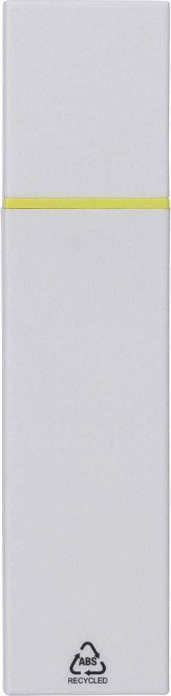 Textmarker aus recyceltem ABS mit weißem Gehäuse und farbigen Details. Mit Klickverschluss und 2 Jahren Garantie gegen Austrocknen. Gekennzeichnet mit dem Recycled ABS Logo.