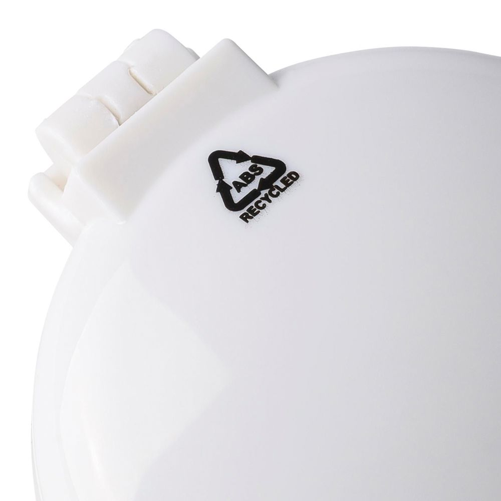 Die Kassette ist aus recyceltem ABS gefertigt und verfügt über eine integrierte Bürste und einen Spiegel. Dank ihres praktischen Designs ist sie ideal für unterwegs und mit einem Recycling-Logo versehen.