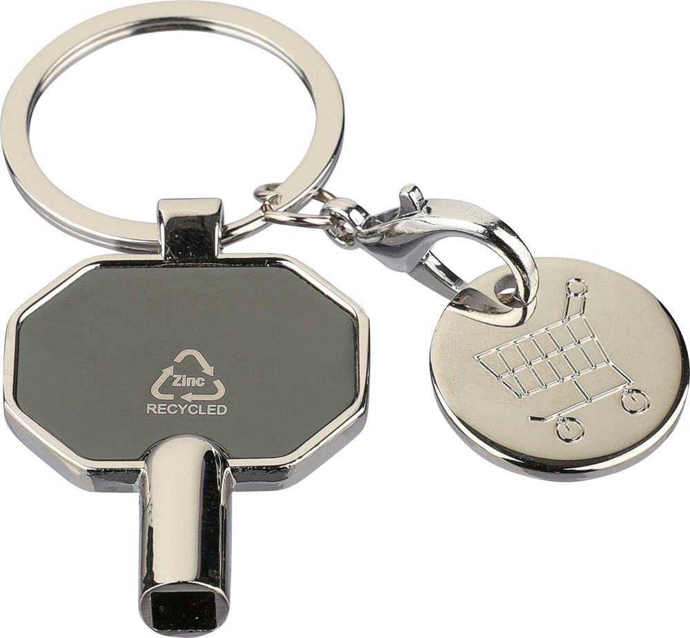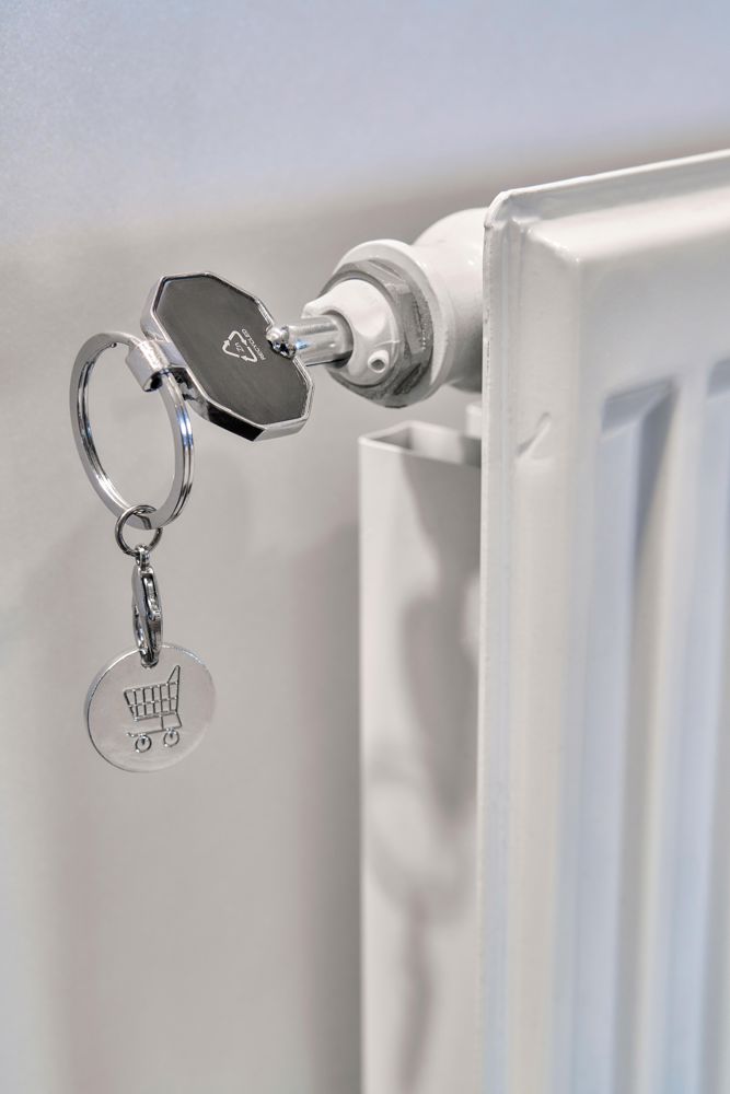 Schlüsselanhänger aus recycelter Zinklegierung mit Einkaufsmünze zum Entlüften von Heizkörpern.... mehr