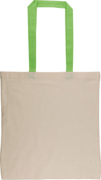 Einkaufstasche aus Baumwolle (140 g/m²) in Naturfarbe mit farbigen Griffen. Größe 38 × 42 cm mit... mehr