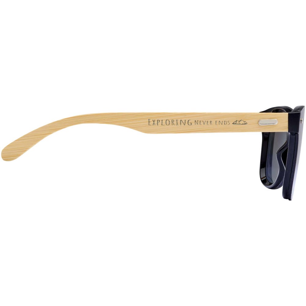 Stylische Sonnenbrille mit farbigen Gläsern und Bambusbügeln. Die UV-400-Gläser schützen vor schädlichen ultravioletten Strahlen. Erfüllt die europäische Sicherheitsnorm EN12312-1.
