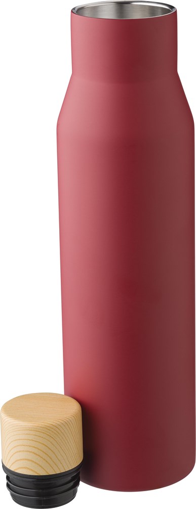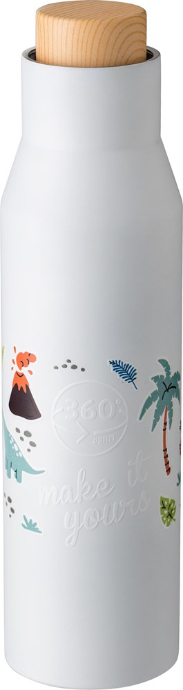 Flasche aus Edelstahl (s/s304) (500 ml) mit Doppelwand und Kunststoffdeckel in Bambusoptik. Einzeln verpackt in einer braunen Kartonbox.