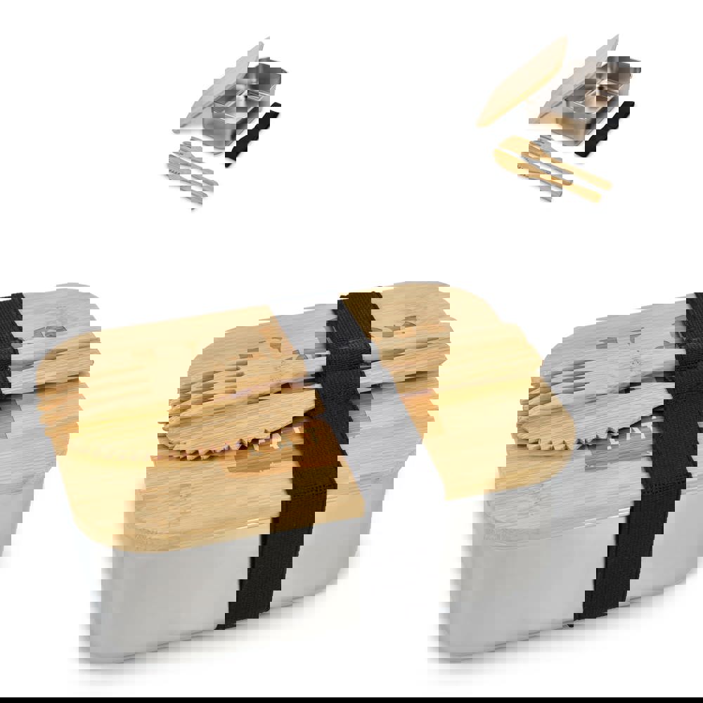 Edelstahl-Brotdose mit Bambusdeckel