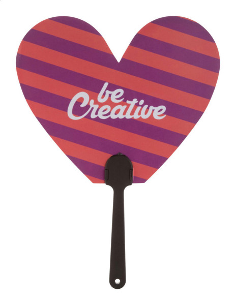 Fächer aus laminiertem Papier mit Kunststoffgriff und vollfarbigen Druck auf beiden Seiten. Der Preis ist inkl. Digitaldruck. Mindestmenge: 100 Stk.